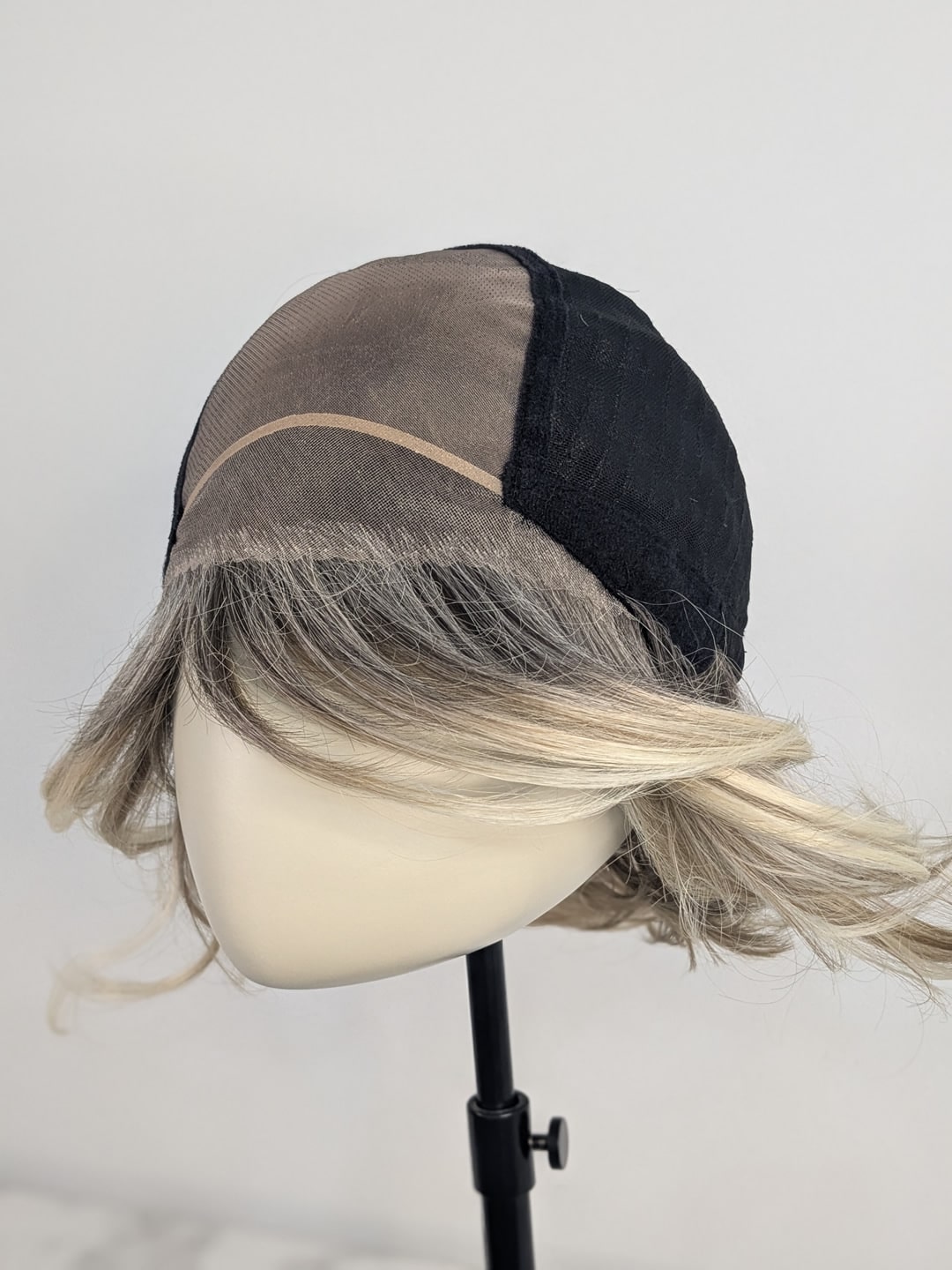 Su base tiene la raya LATERAL de monofilamento hecha pelo a pelo para simular que el cabello nace desde tu propia piel y, además, tiene lace front extendido para poder llevar el cabello retirado del rostro, en un recogido o en coleta de manera indetectable.